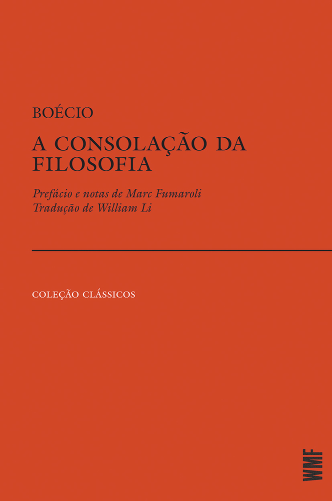Boécio (480-524) foi um estadista, filósofo e poeta romano. Traduziu para o latim parte das obras de Platão e de Aristóteles, e teve uma carreira de sucesso na magistratura, ocupando o cargo de consul em várias ocasiões. Em 523, foi preso e condenado à morte, provavelmente por divergências políticas. A consolação da filosofia, escrita na prisão, tornou-se mais tarde uma das obras mais lidas da Idade Média.  |
