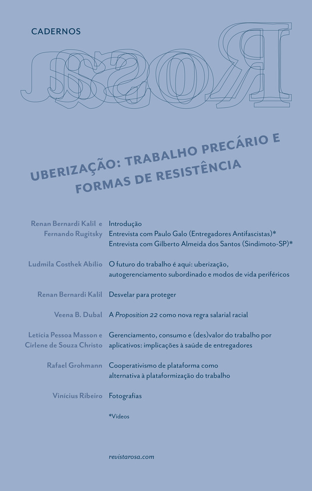 | Autores | Rugitsky, Fernando (Autor, Editor) ; Ribeiro, Vinícius (Ilustrador) ; Kalil, Renan Bernardi (Autor, Editor) ; Abílio, Ludmila Costhek (Autor) ; Dubal, Veena B. (Autor) ; Masson, Letícia Pessoa (Autor) ; Christo, Cirlene De Souza (Autor) ; Grohmann, Rafael (Auto |